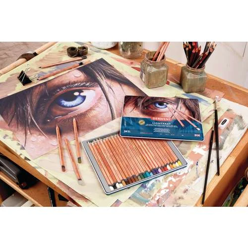 These Derwent Lightfast Coloured Pencil Sets are presented in stylish tins with an eye motif – they would make an ideal gift! They are professional quality colouring pencils in a range of rich colours.