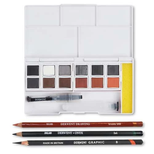 The Derwent Shade and Tone Mixed Media Set is a curated, natural and monochrome mixed media collection, perfect for creating landscape, portrait and tonal studies. It is portable so is ideal for travel and outdoor use with everything needed to paint on the go.