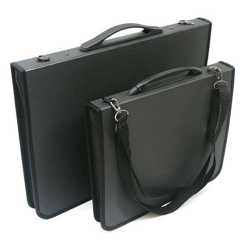 Gerstaecker Presentation Cases are elegant and practical. They are a briefcase design with an adjustable removable shoulder strap that is easily attached by way of carabiners.
