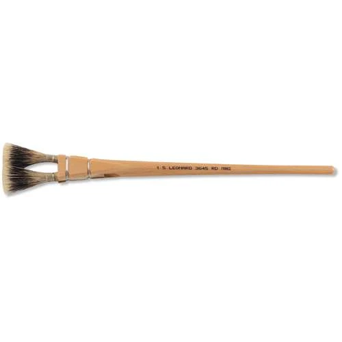 This Léonard Twin-Headed Brush Series 3645 RD has a long flat handle. The slightly wavy, strong and hard-wearing badger hair is characterised by good elasticity and a fine tip, They are attached with real goose quills.