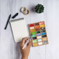 This Marabu Acrylic Colours Effect Set contains 18 water-based acrylic paints. The colours can be mixed with one another and can be thinned with water, they dry quickly.
