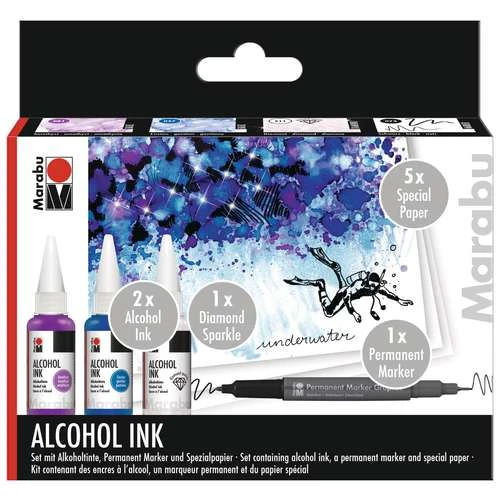 Included in this Marabu Alcohol Ink Set – Underwater are: