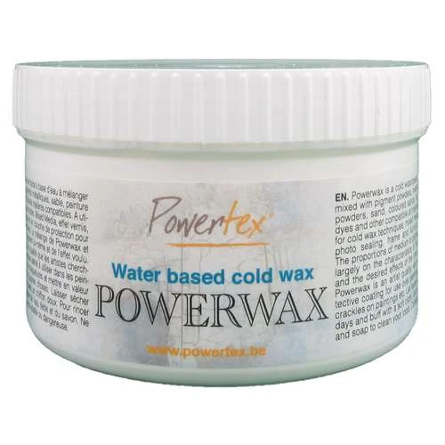 Powertex Powerwax is a water-based cold wax that you can use neat or with pigments, metal pigments, sand, acrylic paint, dyes and other compatible materials.