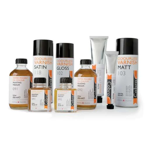These Royal Talens Cobra Varnishes give your pictures a uniform shine. They adhere well to the underlying paint layer and do not yellow or crack. If necessary Royal Talens Cobra Varnishes can be easily removed, even years later. They are available in gloss, satin or matt in 400ml aerosol cans.