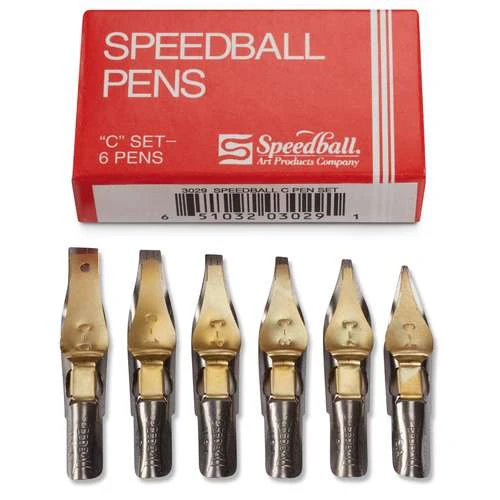 These Speedball Pen Nib Sets contain 6 nibs and are available for each of the 4 series of Speedball calligraphy nibs. They are suitable for use with any straight/classic style penholder.