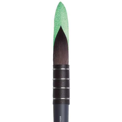 The specialist blend of hair used gives these brushes excellent colour carrying capacity, resilient spring and with good shape retention. Colour flows consistently and evenly, and the tip has the perfect degree of spring and retains its shape. This wash brush is able to hold large amounts of colour, whilst it’s fine point offers control and responsiveness when applying washes.