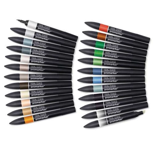 The Winsor & Newton Promarker Architecture Set contains 24 promarkers. The selected colours are ideal for creating a wide variety of designs, from urban and rural architecture to construction details and furniture.